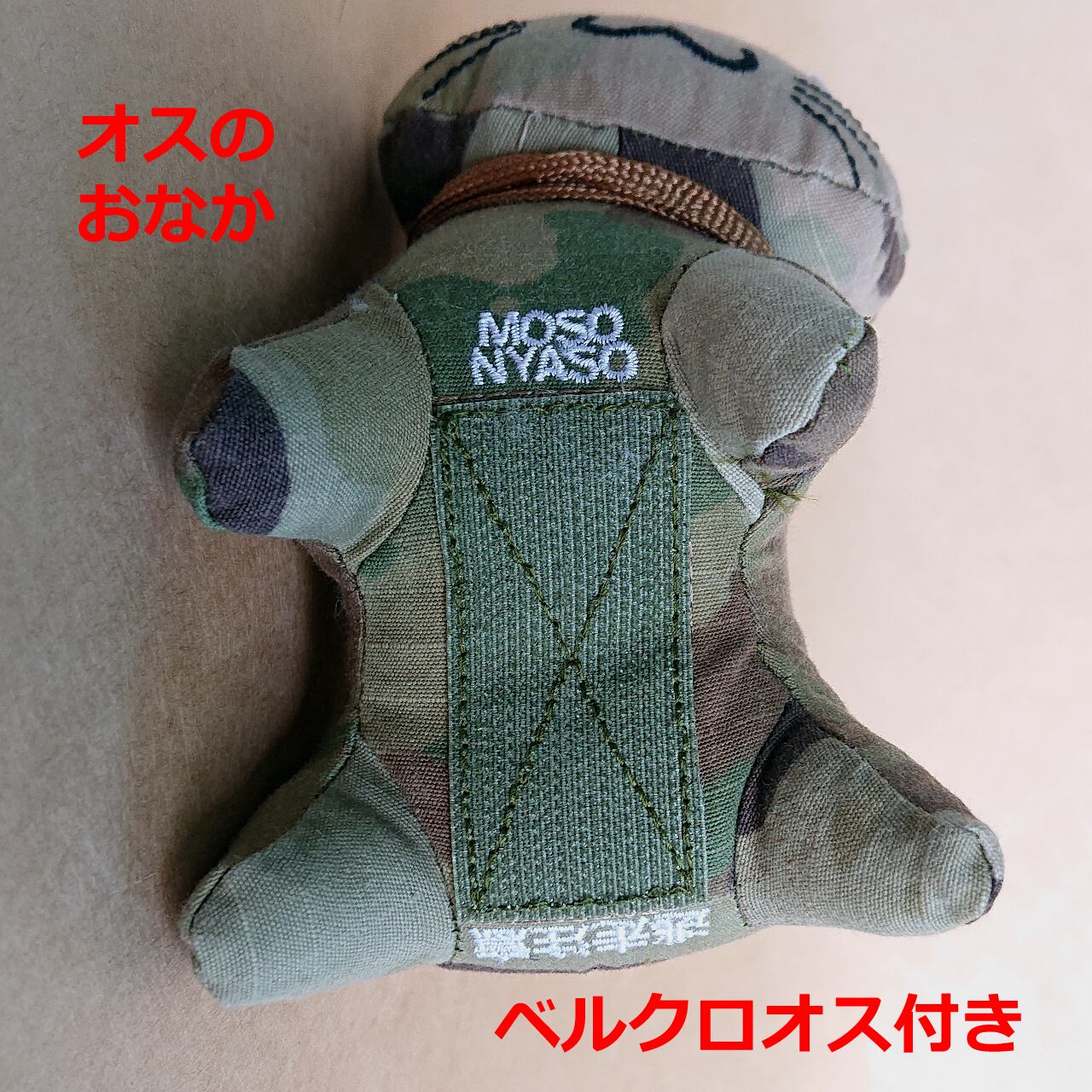 モソニャソのオスメスは性別上の違いではなく、お腹に取り付けられているベルクロ(マジックテープ)がオスかメスかの違いです。